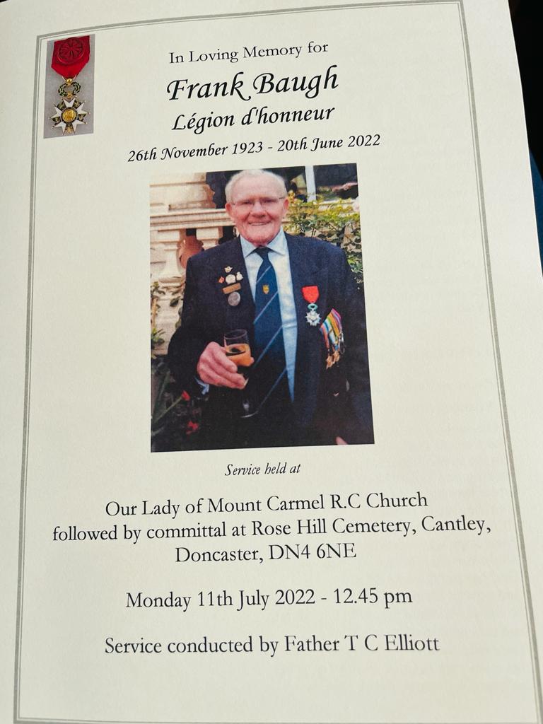 It has been an honour and to have met and known Frank. He will be missed by so many people who consider themselves privileged to be considered as his friends; in Doncaster and Sheffield; in the Normandy Memorial Trust; In the Spirit of Normandy Trust. Ordinary people, who found Frank to be an open and approachable person and were treated by him as being special.