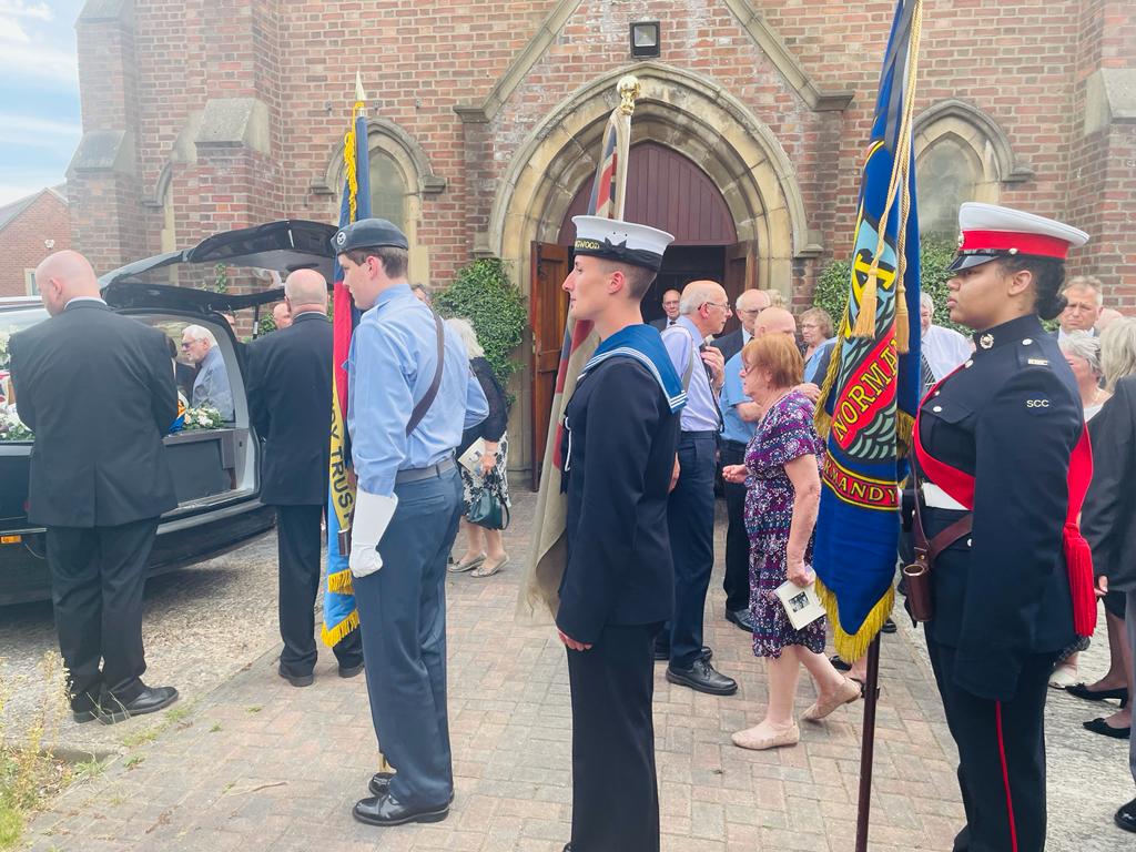 Here we share are some excerpts from today’s Eulogy written by Richard Palusinski, Chairman of the Spirit of Normandy Trust and read by WO Baz Firth MBE, of HMS Collingwood where Frank trained in the Royal Navy. WO Firth is also Trustee of the Spirit of Normandy Trust.