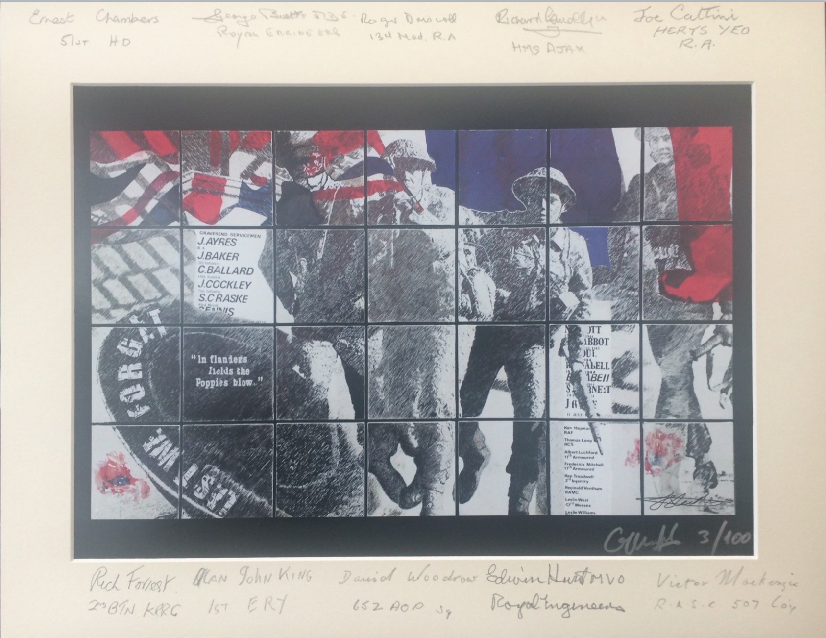 A limited edition print of a mosaic signed by ten Normandy Veterans and created by 6th Form students at St John’s Catholic Comprehensive School in Gravesend is available to purchase. The cost of the print is £40 plus £5 p&p with proceeds to the Normandy Memorial Trust.