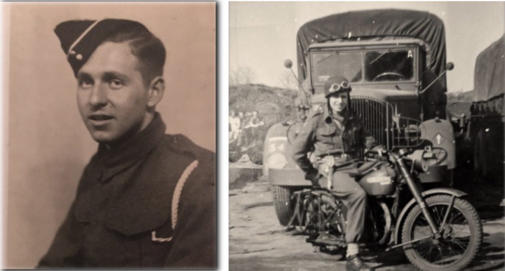 Gordon received his call-up papers and on November 5th 1942 reported for duty, eventually becoming a dispatch rider for the Royal Army Signals Corps (RASC). He was heavily involved in the training taking place around the UK in the lead up to D-Day and shipped out from the Isle of Wight across the Channel on a USA built ‘Liberty Ship’ on June 5th, 1944. At 9.30am the following morning under the constant and withering fire of the D-Day barrage and German defenses, Gordon drove a lorry carrying 15 tons of High Explosive shells, 200 gallons of petrol in Jerry cans with his motorbike on the back, onto Juno Beach.”