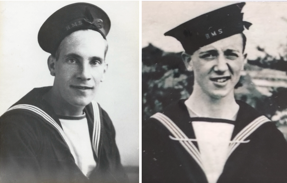 Shipmates – William Wallace (left) and Stan Ford (right) both in Royal Navy uniform ahead of D-Day. William died aged 33, while Stan survived the sinking of HMS Fratton and was left with serious life-long injuries.