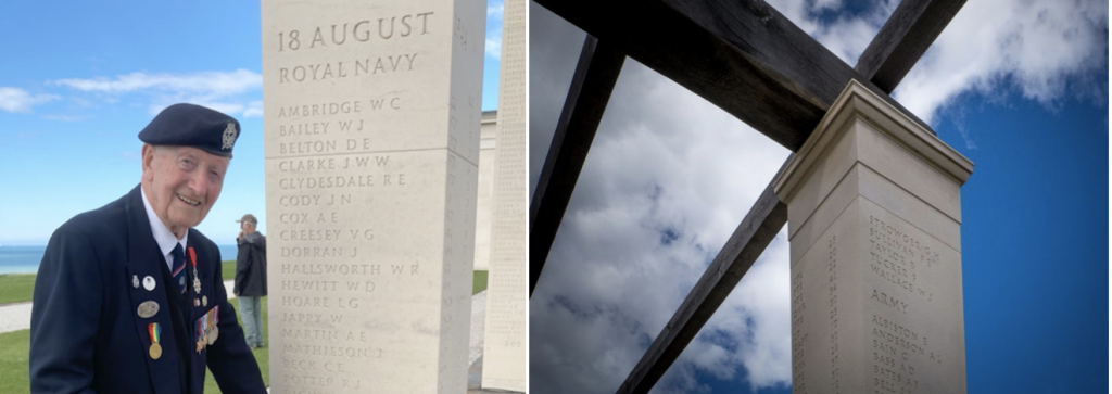 78 years later, Stan visits the completed Memorial and finds the column with 31 names of his fallen shipmates, including William. And the engraving of William’s name, taken by Philip Enticknap.