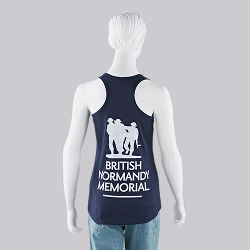 A lightweight navy vest featuring the British Normandy Memorial logo in white on the back and left front side. Available in S / M / L