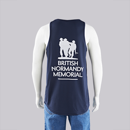 A lightweight navy vest featuring the British Normandy Memorial logo in white on the back and left front side. Available in S / M / L