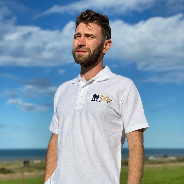 A contemporary and comfortable white polo shirt with the British Normandy Memorial logo. Available in S / M / L / XL / XXL