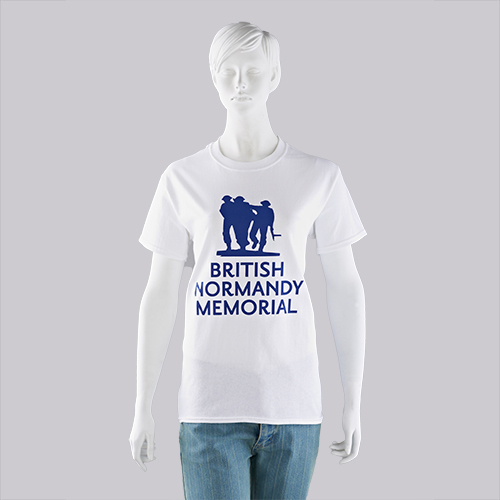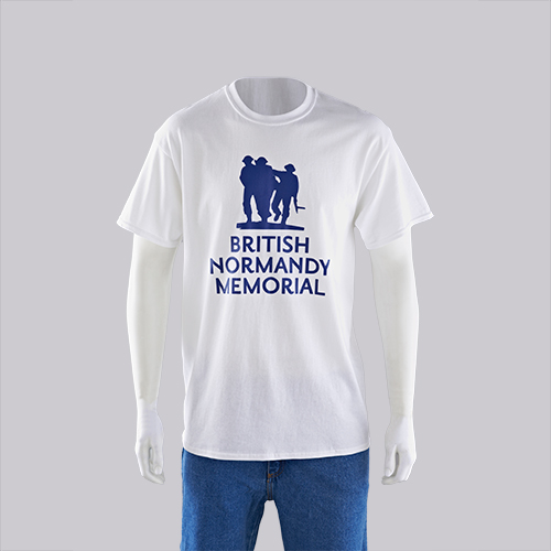A 100% cotton white T-shirt featuring the British Normandy Memorial logo in white on the chest. Available in S / M / L / XL